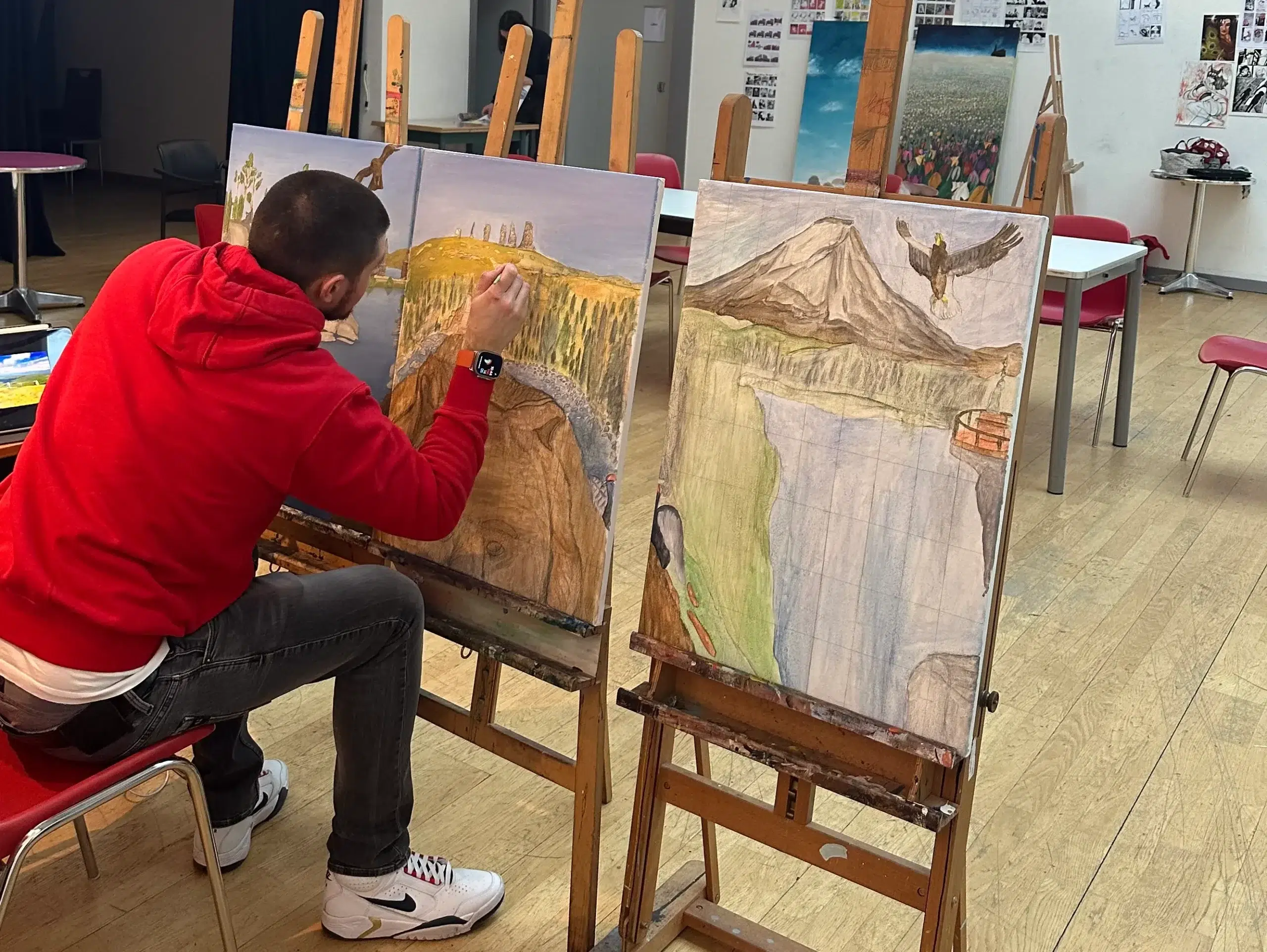 Le cours de peinture est conçu comme un espace de création dans lequel les élèves peuvent exprimer leur créativité et laisser libre cours à leur imagination. L’enseignement accorde une place importante à l’expérimentation et au développement d’idées personnelles, afin d’encourager les étudiants à approfondir leur réflexion artistique et à développer une démarche propre.
